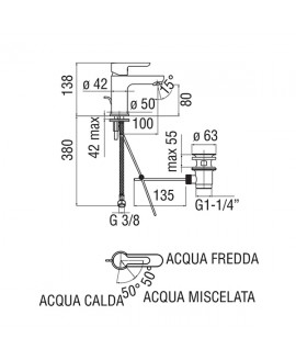 Nobili ABC eco Miscelatore Lavabo a risparmio Energetico, monocomando con scarico automatico 1"1/4 completo di salterello e piletta, MADE IN ITALY.