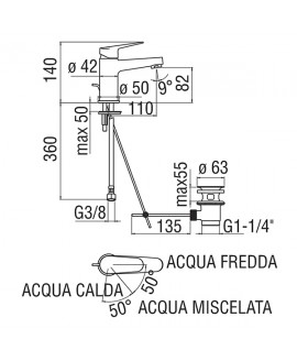 Miscelazione solo verso sinistra in temperatura calda il che permette di non far accendere la caldaia quando la leva e in posizione centrale in modo da avere notevoli risparmi in consumi di metano.